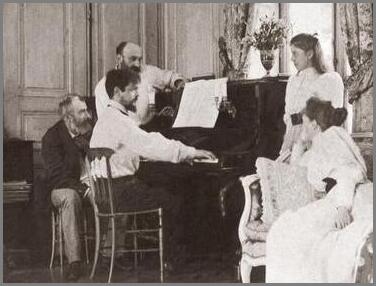 Piano de Debussy. Imagen de Claude Debussy al piano en el verano de 1893, en la casa de campo de Luzancy, de su amigo Ernest Chausson. (Luzancy es una comuna francesa, en la región de Isla de Francia, Departamento de Sena y Marne, en el Distrito de Meaux). Foto Scan de -Mestres da Música- tomo V, de Planeta De Agostini.