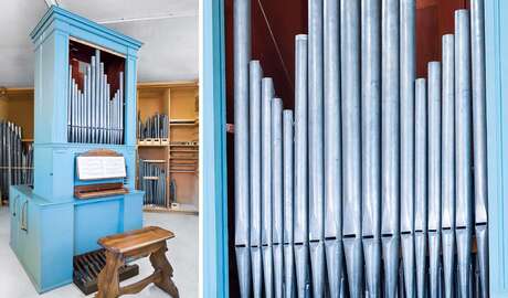 EL ÓRGANO Desde el punto de vista de producción del sonido, el Órgano pertenece a la familia de los instrumentos de viento, ya que para emitir un sonido necesita de dos elementos fundamentales: un tubo y aire en movimiento. Cómo funciona un órgano: El principio de funcionamiento de un órgano coincide con el funcionamiento de la antigua flauta de pan. Y es posible que derive de ella, ya que nació en el siglo III antes de Cristo, en Grecia, donde ambos instrumentos tuvieron gran protagonismo. Si quisiéramos hacer sonar en una flauta de pan varios sonidos simultáneos, necesitaríamos varios intérpretes con distintas series de tubos. Este problema se soluciona en el órgano que produce aire por medio de un fuelle y lo envía por medio de diversos conductos a cada uno de los tubos. El aire se detiene a la entrada de cada tubo y sólo entra en aquellos cuyo orificio se ha abierto cuando el organista presiona la tecla correspondiente. Cada sonido de un órgano, necesita de un tubo diferente.