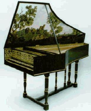 EL CLAVECÍN, CLAVICÉMBALO O CLAVE Otra manera de producir sonidos por medio de un teclado es la utilizada por el clave. Su principio de funcionamiento es semejante al de las antiguas cítaras en las que el sonido se obtenía a partir de la vibración de una serie de cuerdas punteadas o pulsadas con los dedos o con plectros o púas. La limitación de un instrumento de este tipo para hacer sonar varias cuerdas a la vez es evidente. El clave, brinda esta posibilidad, cada tecla, al ser presionada, empuja hacia arriba una tablilla que lleva un plectro en su extremo; este pulsa la cuerda de la misma manera en que lo hace un guitarrista con su púa. Este instrumento fue utilizado desde el siglo XIV aunque fue en el XVII cuando cobró mayor importancia. Cayó en desuso a finales del XVIII con la aparición de otro instrumento de teclado: el pianoforte. Semejantes al clave en su funcionamiento son la espineta y el virginal, instrumentos de cuerdas más cortas y con caja de resonancia más pequeña.